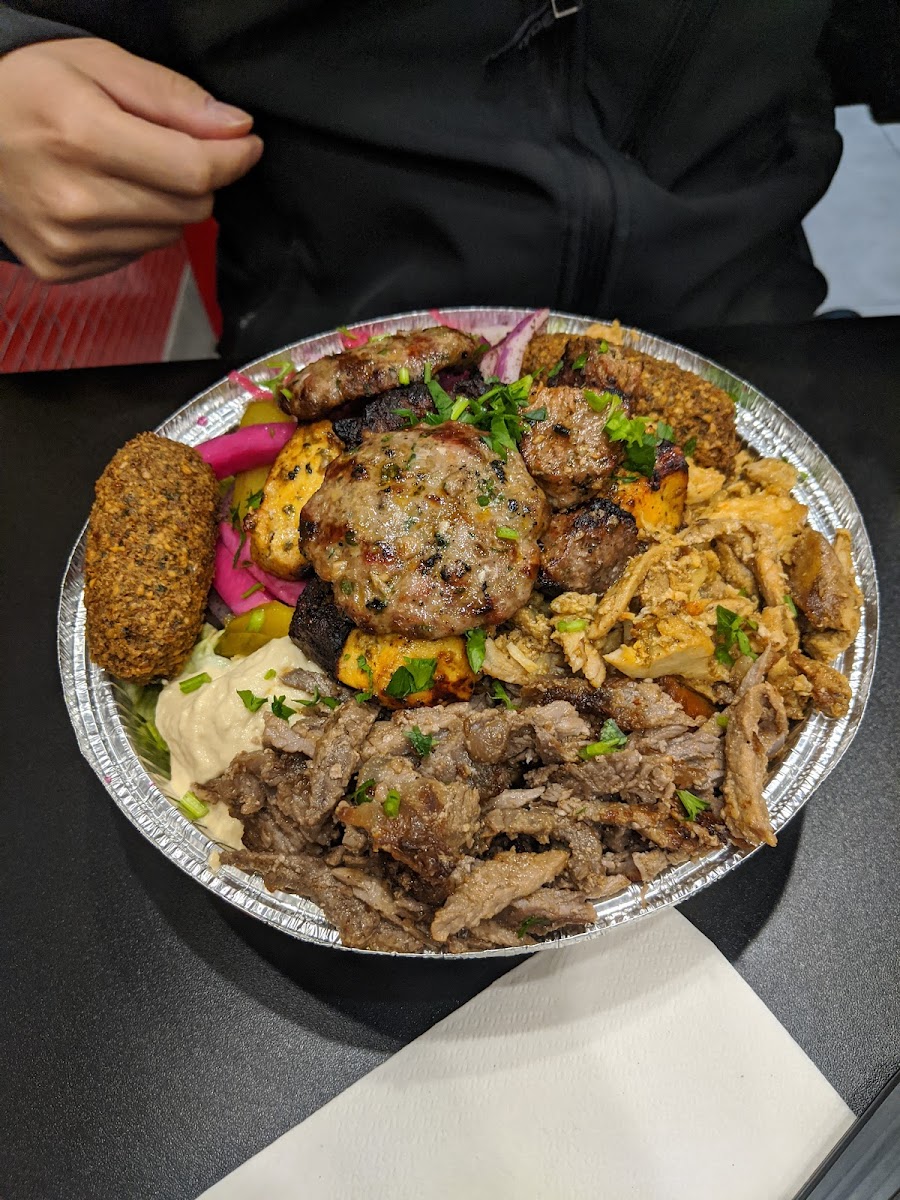- Healthy Queen: A lighter choice featuring kabab, hummus, tabbouleh, and, of course, falafel for just $16.99.